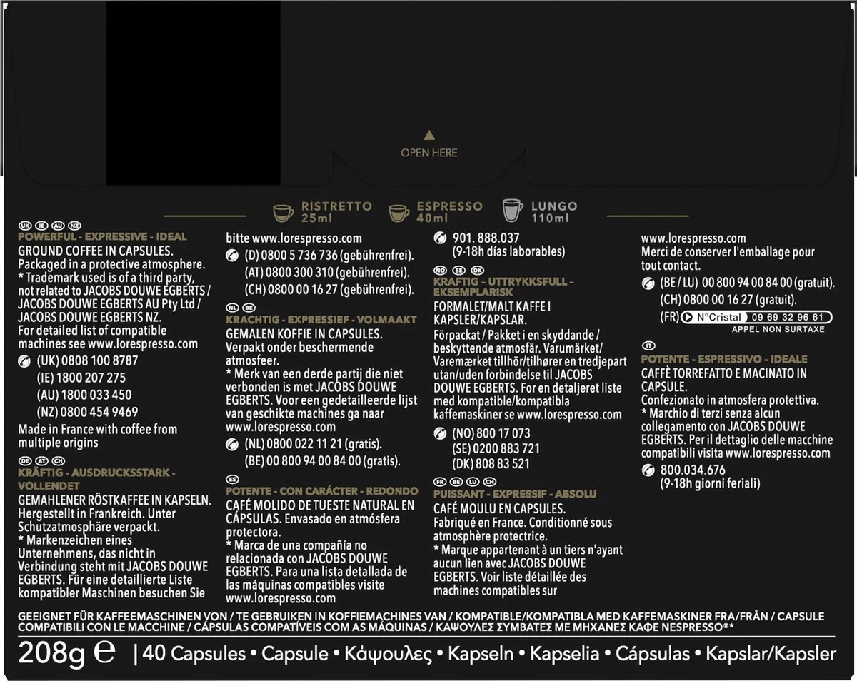 Aantal koffieverpakkingen: 160 verpakkingen