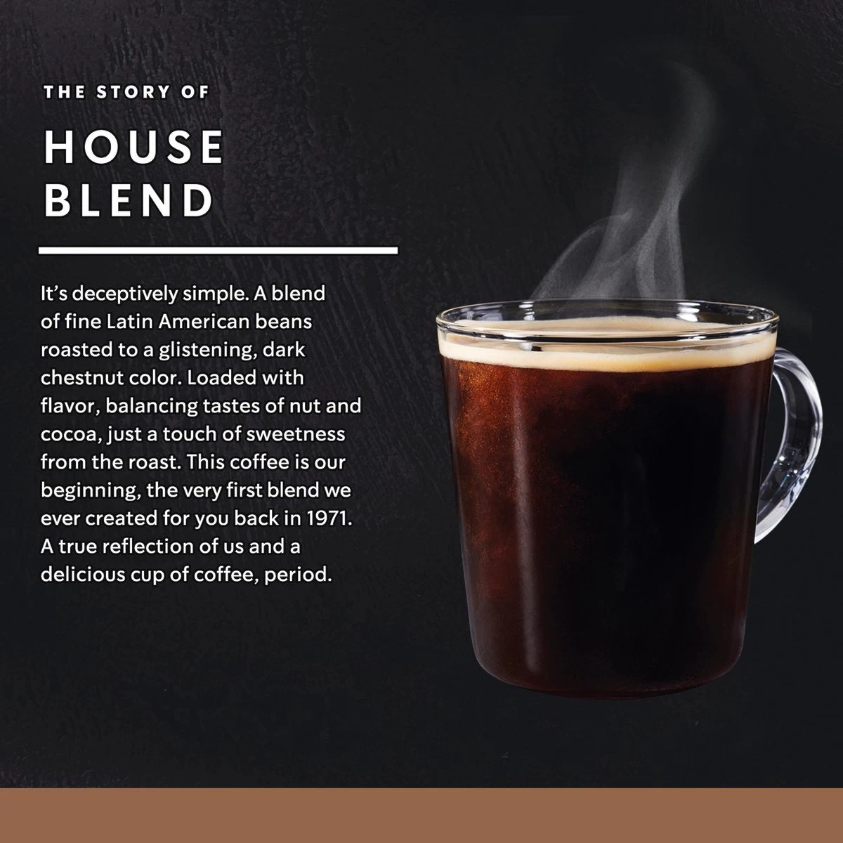 Geniet nu thuis van de Starbucks® koffie voor jouw Nescafé® Dolce Gusto® koffiemachine. Bij de House Blend is aroma, volheid en smaak allemaal in balans met de smaak van noten en cacao, ontstaan door de zorgvuldige branding.